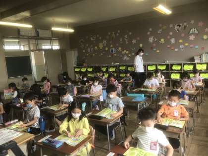 1年生は昨日に続いての登校日ですが、算数の学習に頑張って取り組んでいました。