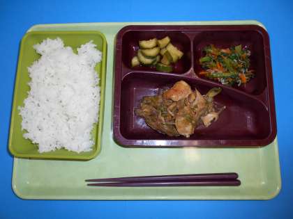 小松菜とじゃこいためは、小松菜、にんじんをボイルし、煎ったじゃことしょうゆ、さとうなどの調味料を入れてごま油で炒めました。