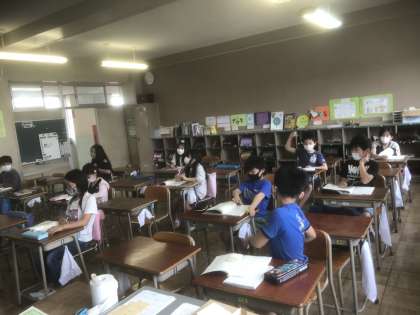 4年生少人数指導後半の様子です。国語の物語文の読み取りをしているところです。