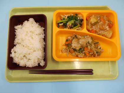スタミナ炒めは、豚肉とにんにくやしょうが、にら、もやし、ながねぎ、たまねぎ、にんじんを炒めてしょうゆなどの調味料で味付けをして作りました。様々な野菜が入っているので野菜がたっぷりとれる料理です。