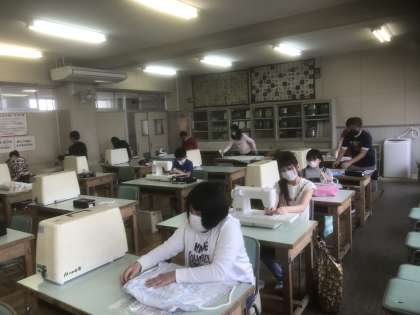 6年生少人数指導の1時間目ですが、家庭科のミシンと音楽の授業を頑張っています。