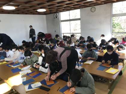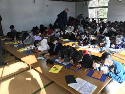 日光彫り体験をしています。思い出に残る作品を作ろうと真剣に取り組んでいます。