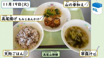 高尾山に広がる美しい紅葉のイメージを、もみじの形をしたかまぼこを使って表しました。
