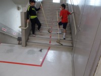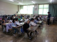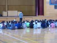 体育館整備の奉仕活動の後の学年集会です。松木小最高学年としての志と振る舞いを確認...