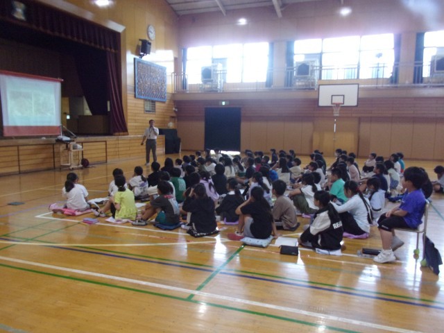 社会科の「風水害からくらしを守る」の学習で、八王子市役所の方をゲストティーチャーとしてお招きしました。