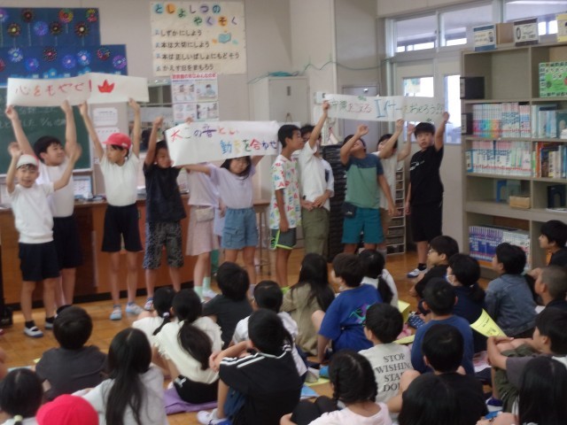 「心をもやせ!太この音と動きを合わせて 沖縄をこえるエイサーをおどろう!!」というみんなで考えたスローガンをもとに頑張ります!
