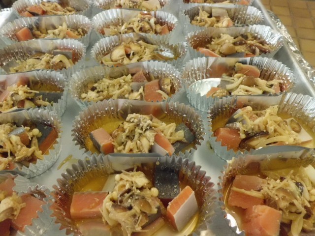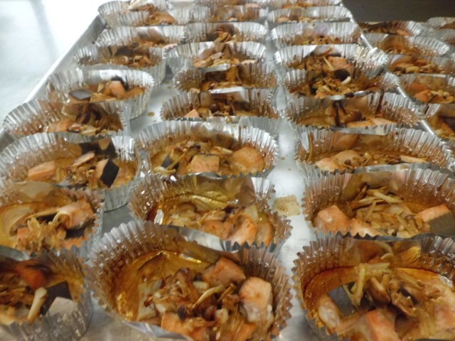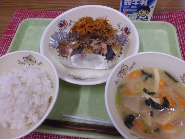 「ますのきのこ焼き」には、しめじ・えのき・生しいたけを入れました。