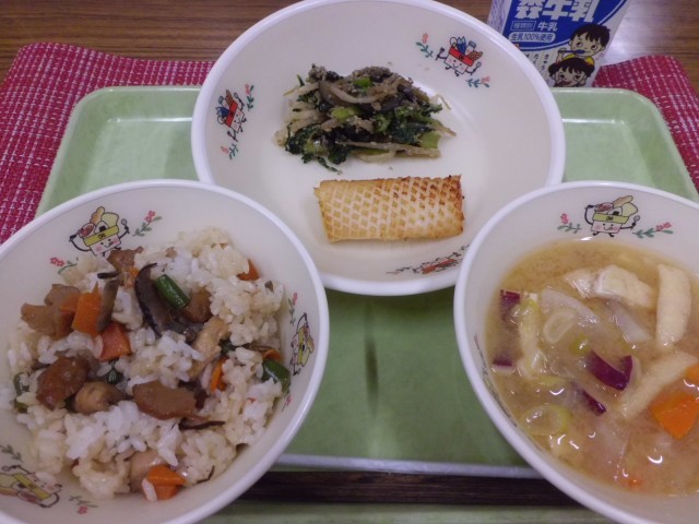 給食では、鳥取県の伝統的な食材「あごちくわ」を入れました。