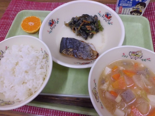 今日の給食では、小松菜・なす・大根・にんじんで作りました。