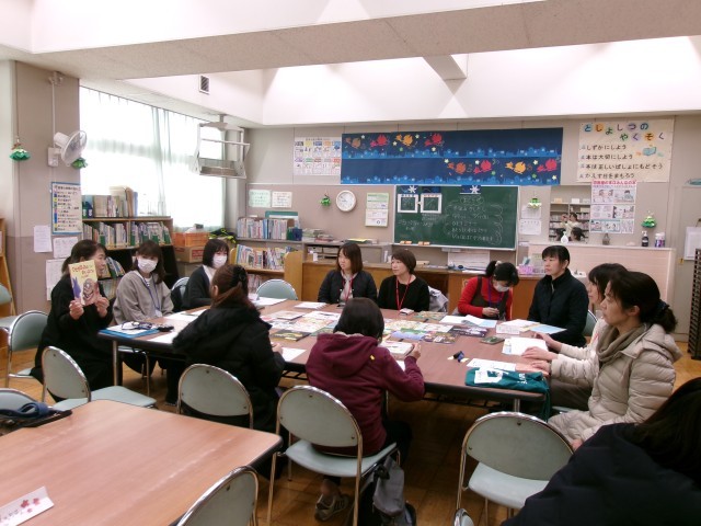 また、読み聞かせの後、図書ボランティアの方々が集まり、各クラスの読み聞かせの様子を共有したり、3学期の読み聞かせの担当を決めたりしてくださいました。