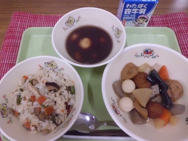 新年最初の給食は、1月11日の「鏡開き」に食べる行事給食です。