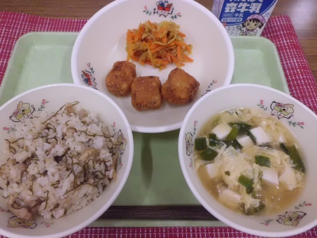 松木小の6年生が、家庭科の授業で今まで学習してきたことのまとめとして給食の献立を作成しました。