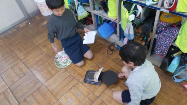 また、作った作品にうちわで風を送って楽しく遊びました。スチレン容器やうちわのご準備ありがとうございました。