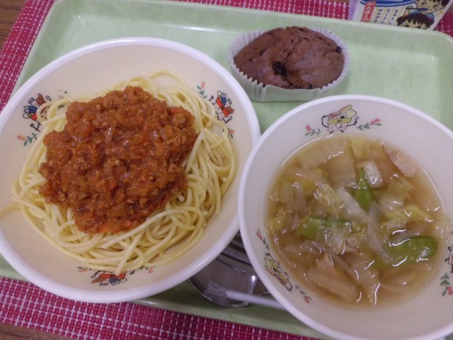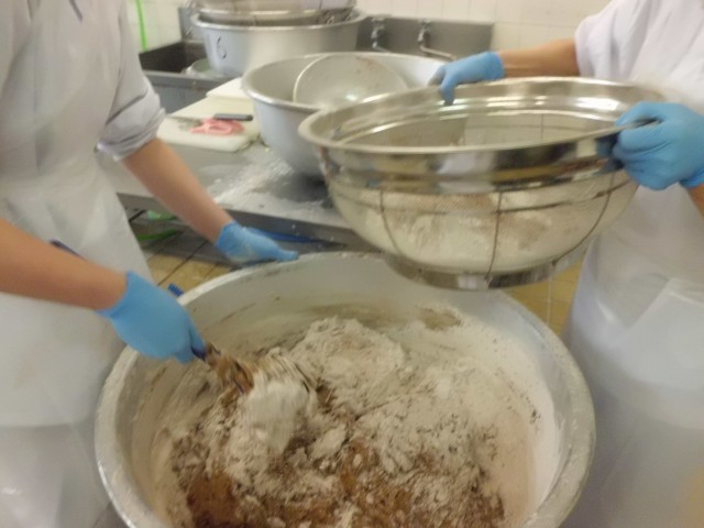 そこで給食でもチョコチップを入れたココアケーキを作りました。