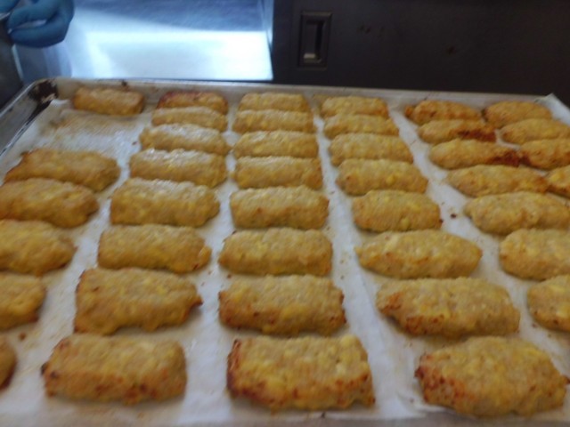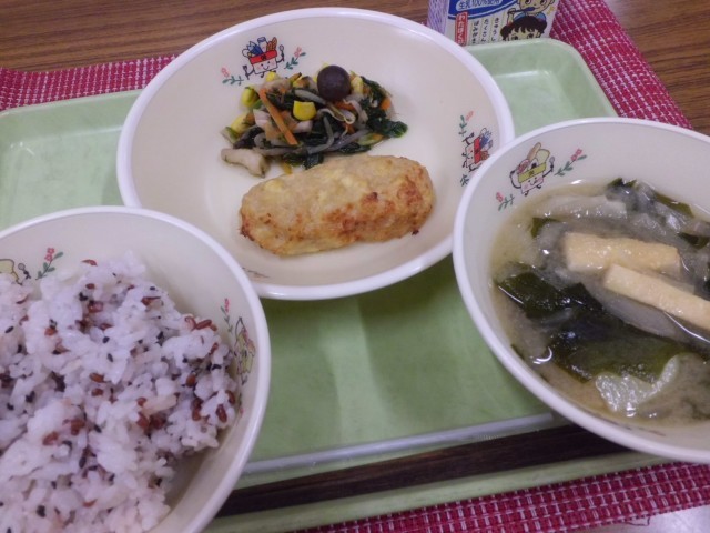豆腐・鶏肉・玉ねぎ・蓮根・にんにく・マヨネーズが入っています。ふわふわサクサク、美味しくでき上がりました。