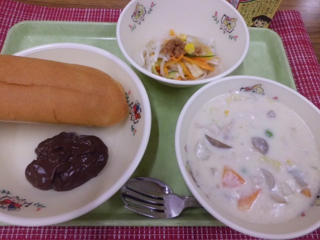 ココアクリームも給食室での手作りです。パンに挟んで食べます。