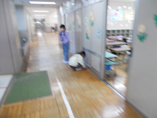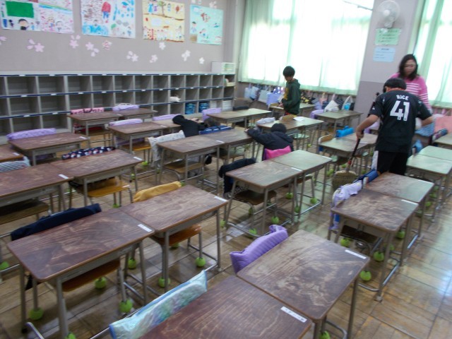 後輩たちが遊んでいるときも1年生が帰った後の教室清掃をしています。