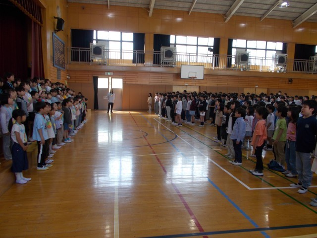 子供たち全員で校歌を響かせ合い、そして、1年生からお礼の「1年生になったら♪」の歌声に笑顔と拍手で応える2年生から6年生。