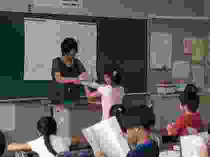 各クラスで、担任の先生から通知表「あゆみ」が手渡されました。