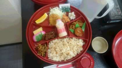昼食。入れ物の大きさにびっくり。