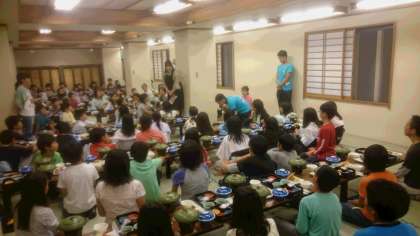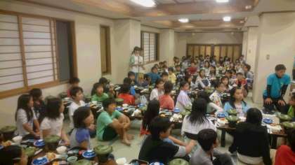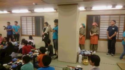 到着式。雨でできなかったので、夕食前にやることにしました。宿舎の方々には3日間お世話になります。よろしくお願いします。