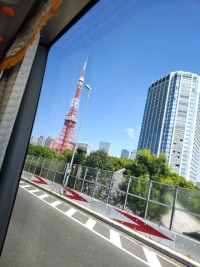 【車窓から】道がとても混んでいるため、浅草到着が予定よりも遅れていますが、バスの...