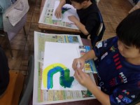 今週の図工は「えのぐひっぱレインボー」という題材でした。画用紙に絵の具を乗せ、厚...