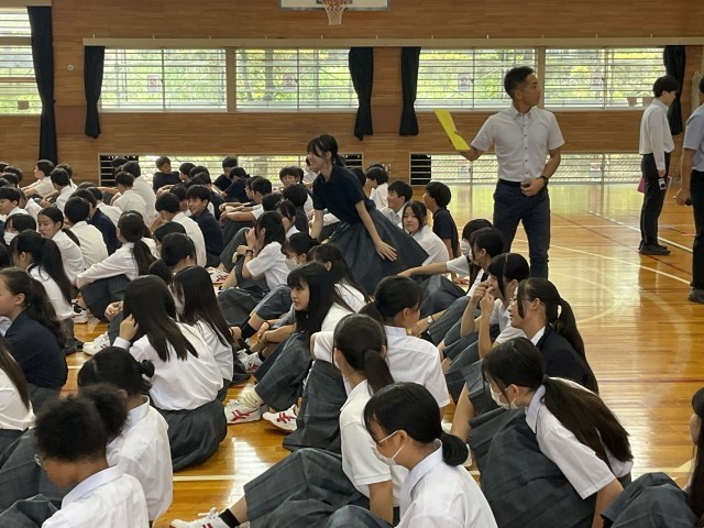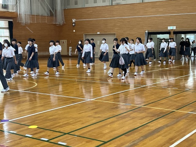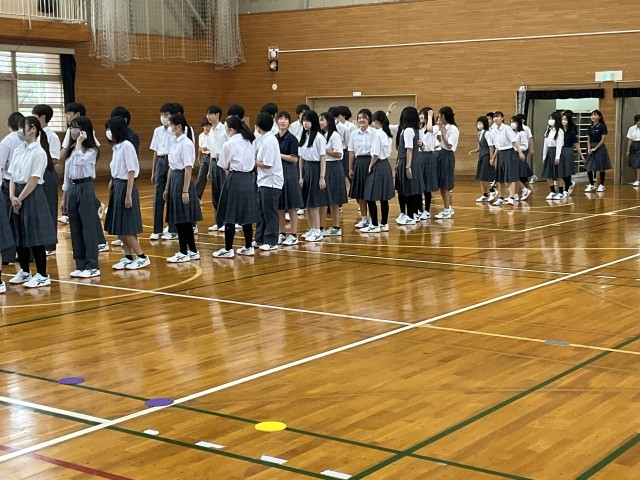 始業式のために、体育館に集まってきました。