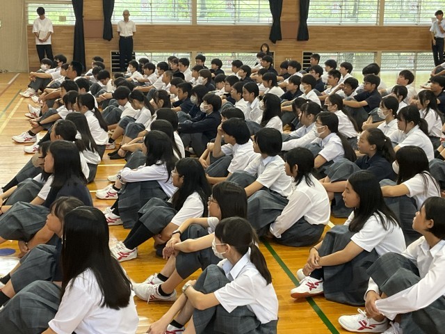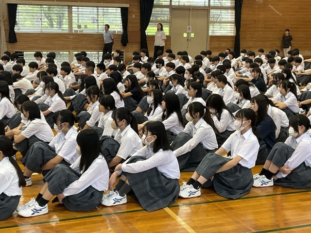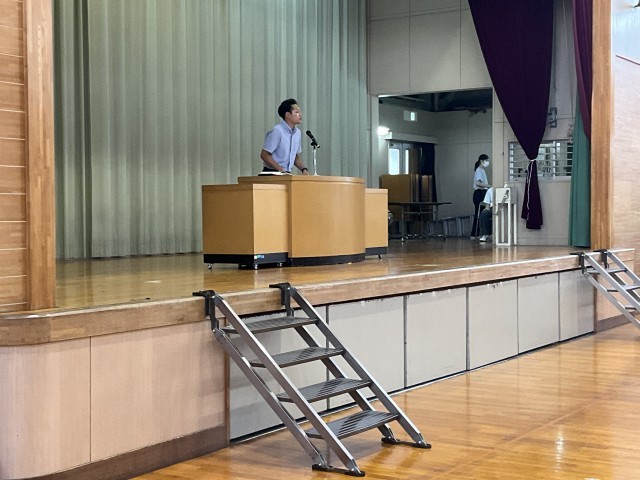 2学期も自由服登校期間とすることやあいさつの励行について伝えてました。