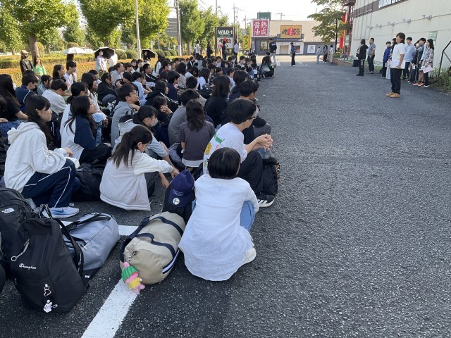 多くの保護者の方が見送りにきていただいています。