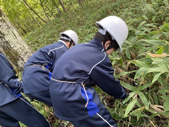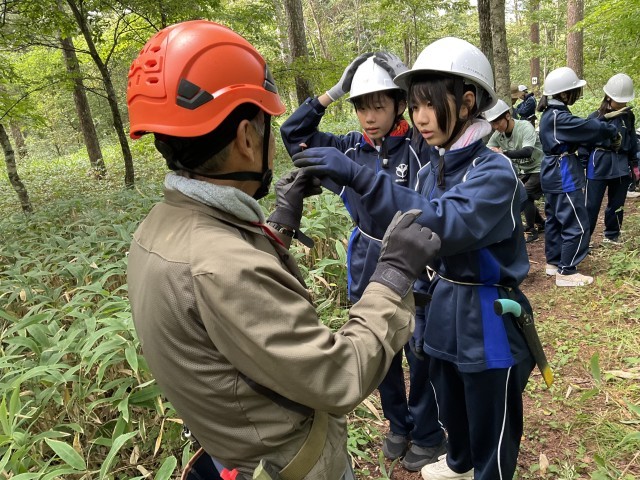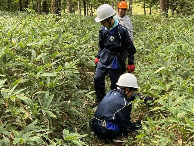 作業中に見つけたキノコが食べられるか、講師の先生に質問していました。