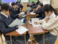 生殖のしくみの違いを、グループで確認しています。
