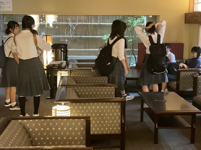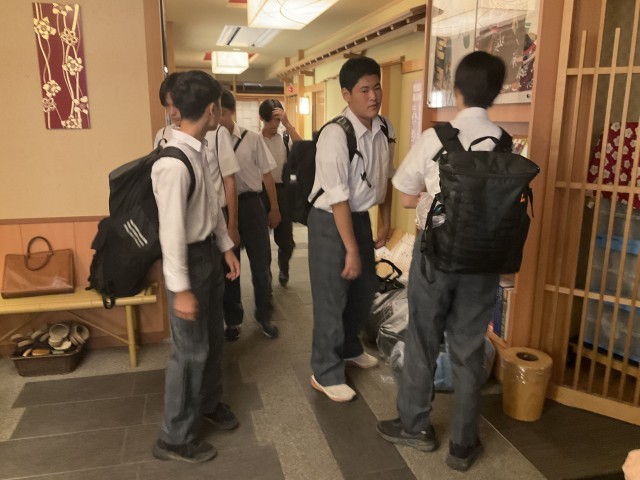 定刻前に、大きな荷物を持ってロビーに集まってきました。