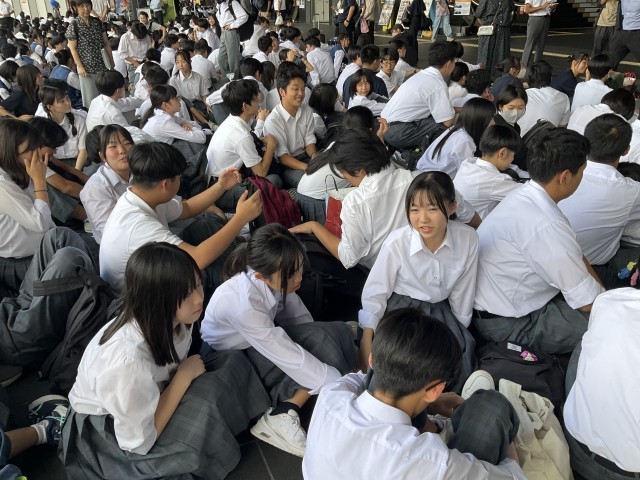新幹線ホームへの移動を待っています。