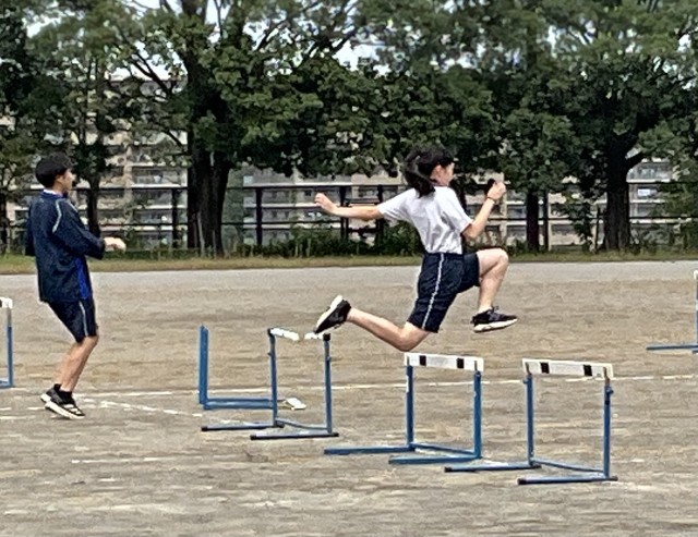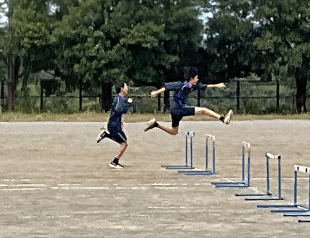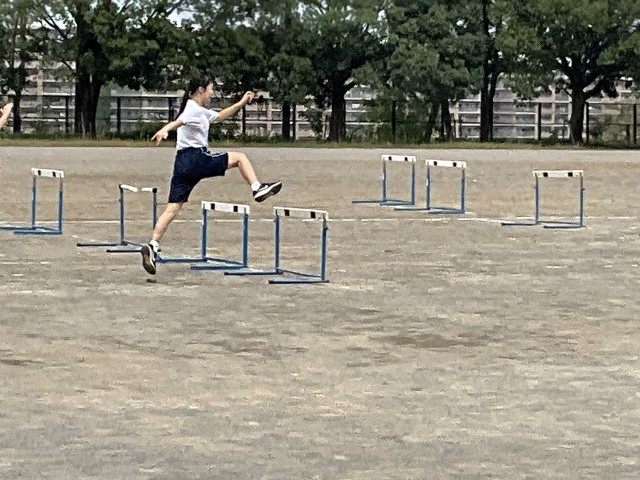 ハードル走の練習です。