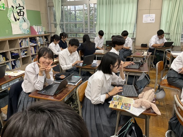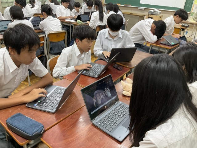修学旅行のまとめをしています。