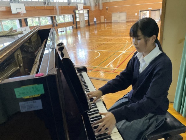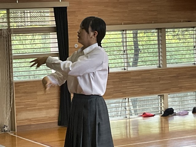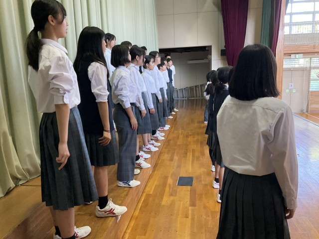 パートリーダーが体育館の後方で、声の大きさを確認していました。