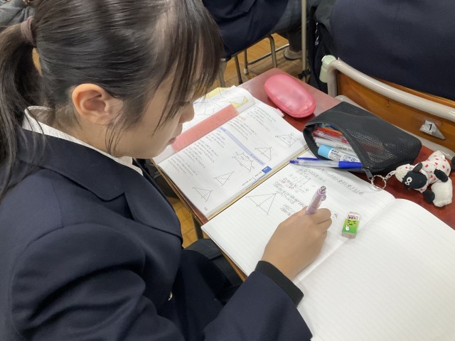 三角形の相似の証明をしています。