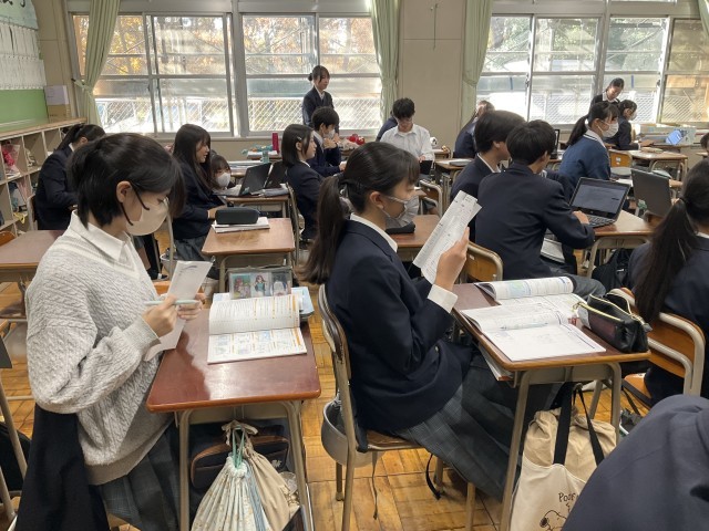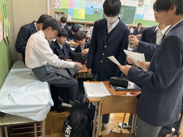 くじを引いて決まった季節の天気の特徴を発表しています。