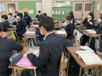 記事を読んで要旨を確認して問題に答えています。