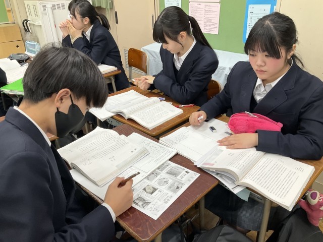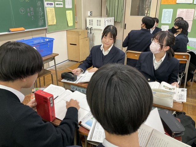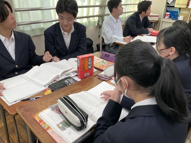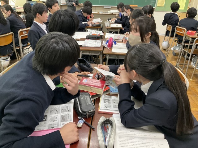 内容について資料を参考にしながら解説や疑問点を話し合っています。