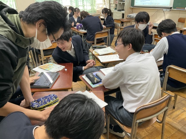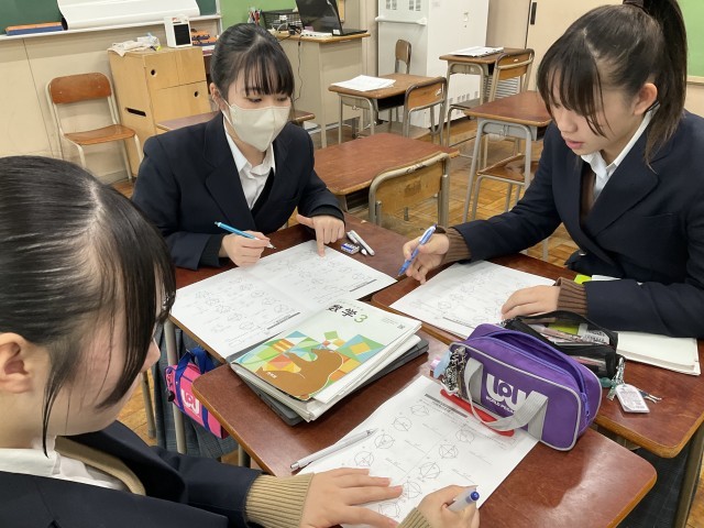 教え合いながら解いています。