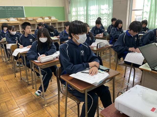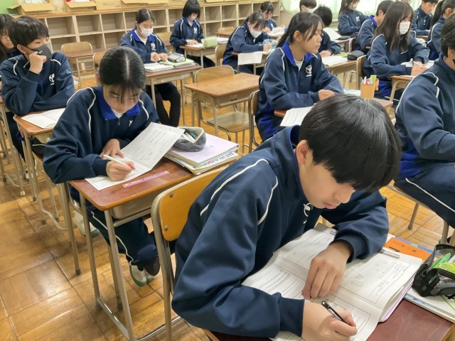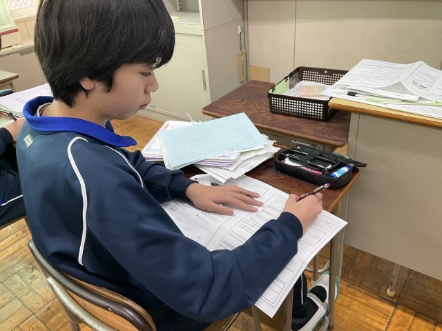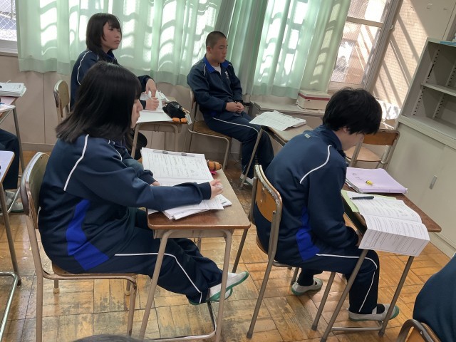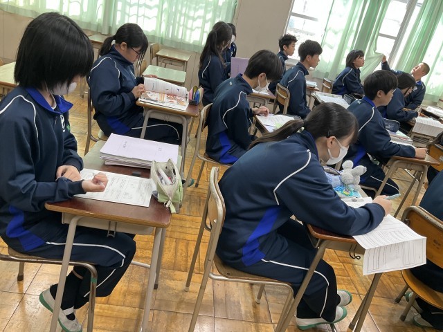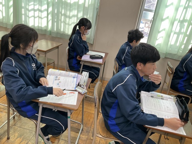 教科書の本文の内容を確認しています。