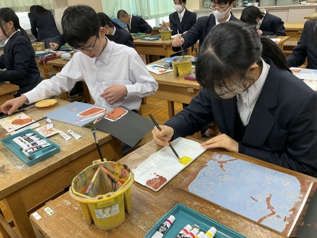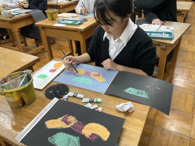 一版多色刷り版画の制作です。