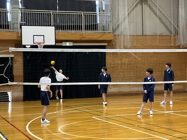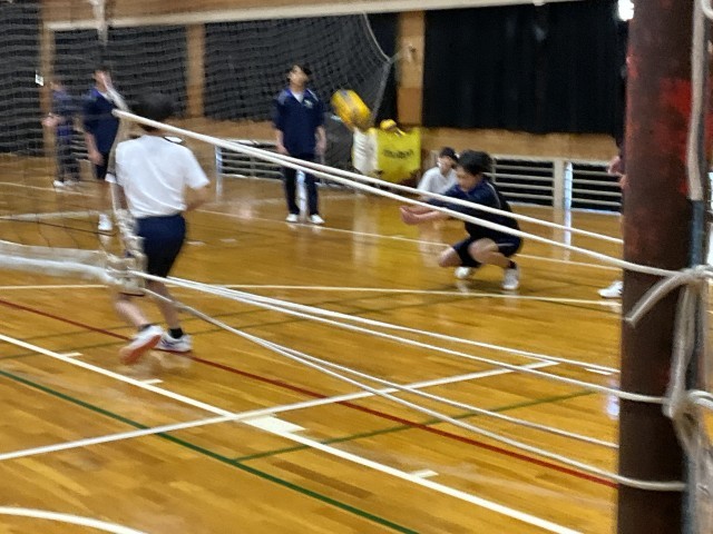 バレーボールの試合をしています。