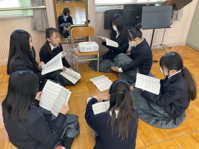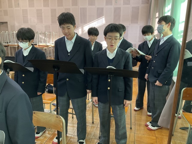 「青葉の歌」のパート練習が終わり全体で合わせています。