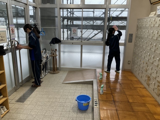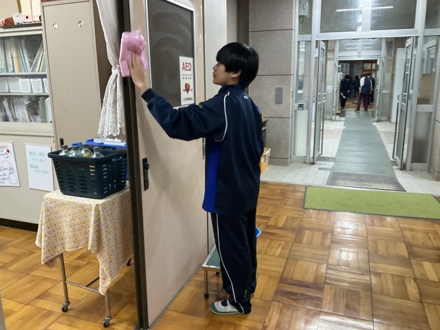 玄関や下足箱も掃除しています。