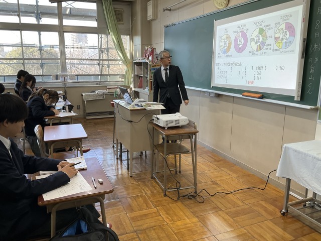グラフを見て、鉱産物の輸出量を確認しています。
