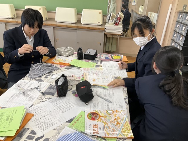 巾着袋の製作です。