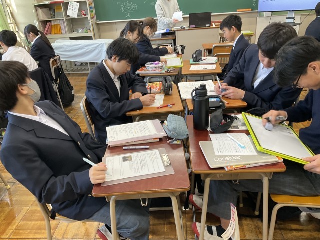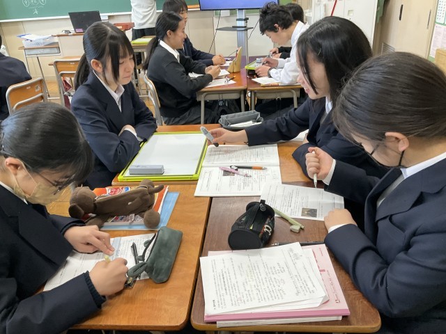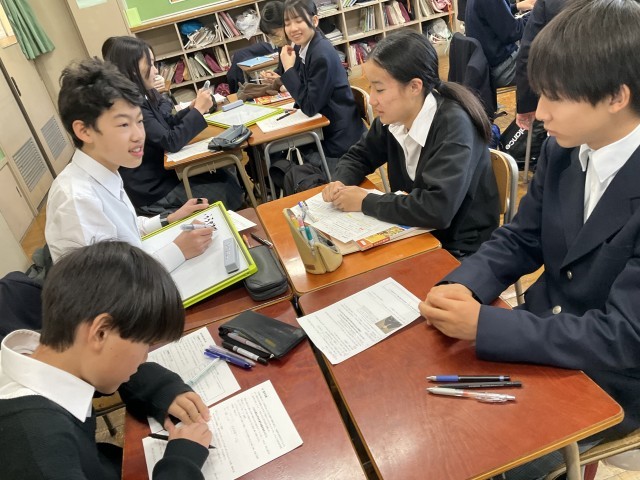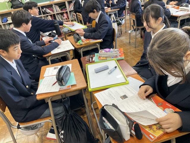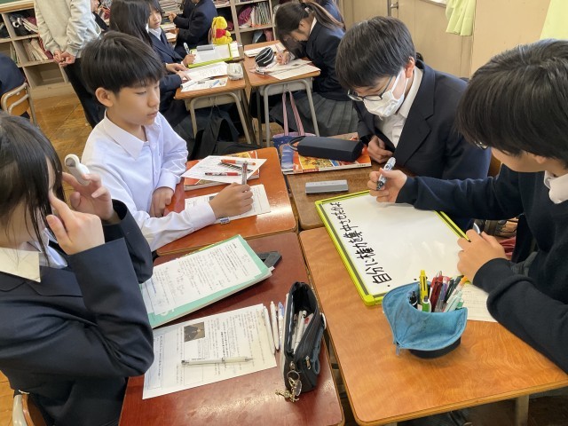 壇ノ浦の戦い後の源頼朝の行動について、その理由を班で話し合っています。